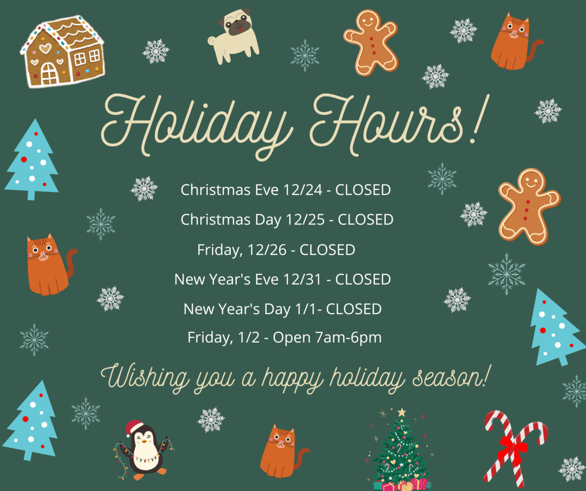 As the holidays approach, we want to share a few important updates and reminders with our amazing clients: We will be closed on December 24-26 and December 31-January 1 for the holiday season. If your pet needs emergency care while we are closed, please contact: Carolina Veterinary Specialists – Greensboro 📞 336-632-0605 After Hours Vet Emergency Clinic 📞 336-851-1990 Happy …